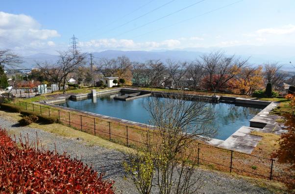 この西天竜用水の西側の大地に灌漑(かんがい)用水を揚げようと、日本最大級の用水施設建設に取り組んだのが「伊那西部」と呼ばれる、長野県伊那西部土地改良区連合の計画でした。昭和47(1972)年に着工し、昭和62(1987)年に完成をみました。伊那市・辰野町・箕輪町・南箕輪村におよぶ農地2,561ヘクタールに、幹線・支線の総延長約300キロメートルの水路を引き、南箕輪村の天竜川付近の揚水機場(ようすいきじょう)から伊那市西箕輪羽広荘下のファームポンドまで揚水しているわけです。水はそこから辰野町までの北幹線と伊那市西春近までの南幹線に分かれて流下して大地を潤します。