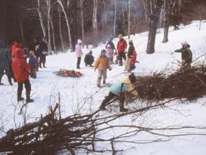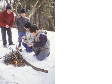 2月上旬の伊那谷がいちばん寒い頃、子どもたちを集めて「冬の自然観察会」をしています。公民館活動として仲間と始めたこの観察会はもう10数年になります。きっかけは、加熱するテレビゲームでした。友達同士が無言でゲームに熱中する光景は健全ではありません。時間のけじめもなく仮想の世界に遊ぶ子どもたちをみんなで野外に連れ出そう。そんな思いから始まりました。毎回30人ほど参加する観察会は、雪の上に残る動物の足跡さがし、冬の野鳥観察、木々の冬芽観察などですが、参加者がいちばん苦労しながらも喜ぶのが、雪の中での焚(た)き火です。薪(まき)を集め火を焚いて、雪を溶かしてお湯を沸かし、みそ汁を作って、持ってきたおにぎりを食べる。それだけのことですが、雪が舞ったり、風が吹いたり、手がかじかみながらの作業はこの上なく難しく、火が焚けなければお昼が食べられません。みんな必死で焚き火に挑戦します。でもマッチを擦ることがはじめての子ども、濡(ぬ)れた手袋をしたままライターをつけようとする子、いきなり太い木にライターで火をつけようとする子。大人は手を出しませんから、みんな必死です。泣きべそをかきながら頑張る子もいます。でも誰かが上手に煙を立てはじめると、みんなの顔が明るくなります。火をつけた子どもはみんなのヒーローです。そして雪を溶かしてお湯を沸かし、温かなみそ汁を作ります。大きな焚き火に小さな手をかざしてみんな笑顔です。長靴に雪が入って冷たそうな子どももいます。ほっぺを赤くして鼻水の出ている子もいます。でも、みんな自分で体験して初めてわかることばかりです。「生きる力」ってそういうことの積み重ねなのでしょうね。