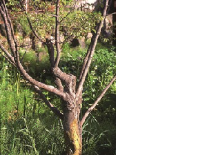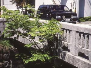 小沢川にかかる、明十橋の橋脚に生きているケヤキに気づいたのは15年ほど前です。水も得られず、土もなく、養分もない橋脚と橋桁のすきまに芽をだして、よくも生きていられるものだと、ケヤキの強い生命力と不遇さに心を寄せていました。ケヤキは2本ありました。そのうちの1本はまもなく枯れ、残る1本も何度か枝を落としたり、日照りの夏に葉を枯らしながらもなんとか生きていました。明十橋を車で通るたびに、まだ大丈夫、元気に健気に懸命に生きているのだと、ケヤキへの思いはますます大きく強くなっていきました。その明十橋が架け替えのために取り壊わされることになりました。平成13年のことです。切られて捨てられてはいけないと思い、伊那市役所に行くと、橋は長野県伊那建設事務所の管轄だといわれ、さっそくケヤキをもらい受けるための払下げ申請をしました。担当者と建設業者の計らいで無事に橋から離れ、明十橋の橋脚に生えてしまったケヤキは、我が家の小さな畑の土に根を張ることになりました。しばらくは養生して、元気になったら、いずれは生まれた小沢川の川辺のどこかに移してあげようと思いながら10年が経ってしまいました。ケヤキは幹回りが70センチメートル、高さが5m、そろそろ周囲の家に迷惑がかかりそうな大きさです。年々大きくなっていくケヤキに喜びながらも、これ以上になると移植できなくなる不安と思いは複雑です。そろそろ明十橋のケヤキの移転先を探さなければと家族ともども思案中なのです。