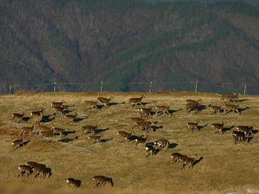 南アルプス一帯には、30,000頭以上のニホンジカが生息するといわれています。里山から、亜高山帯・高山帯までその生息域を広げています。「花の仙丈ヶ岳」と称された、人気の仙丈ヶ岳周辺でも、シカ・鹿・しか・ニホンジカだらけです。馬ノ背から小仙丈カールや大仙丈カールまで、群れをなしてわがもの顔に跋渉(ばっしょう)しています。彼らは6月の雪解けの頃から植物の枯れる9月下旬まで、貴重な高山植物を、朝から寝るまで食(は)んで暮らしています。かつて「お花畑」と呼ばれたところでは、黄色や白、ピンクなどの花は消え、手入れされたかのような疎(まば)らな芝生に変わってしまいました。ニホンジカが舐(な)めるように食べてしまったのです。これはこれで大変なことなのですが、もうひとつの心配は亜高山帯の惨状(さんじょう)です。1,500mから2,500m付近には、シラビソ・コメツガ・トウヒなどの針葉樹とダケカンバ・ナナカマドなどの広葉樹の原生林があります。そしてその林床(りんしょう)には、カニコウモリやシダ類といった植物があり、強い雨が降っても針葉樹や広葉樹が受け、そこから滴り落ちる雨滴は、その下の林床植物が優しく受け、そして地面に滲(し)みていきます。つまりいくつものクッションがあるので、雨はいきなり流れ出さないのです。しかしニホンジカが、この林床にある植物や針葉樹の樹皮まで食べつくしてしまい、南アルプスの亜高山帯には、雨を受ける力と大地を支える力がなくなっています。つまるところ雨は直接山肌に落ち、表土をいきなり剥(は)ぎ取って流れだすわけです。貴重な高山植物がなくなり、林床は裸地化(らちか)し、土砂崩れの前兆が始まり、南アルプスの山奥では、じわりじわりとニホンジカによる被害が広がっています。