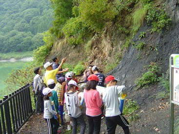 長谷溝口露頭 子どもたちが大地の声を聞いています