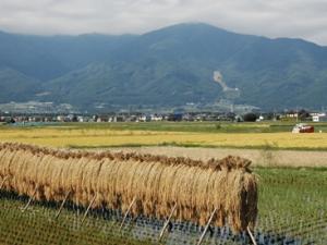 伊那は長野県で最大の穀倉地帯です。黄金色に輝いていた広大な稲田が、コンバインの動きとともにきれいさっぱりとした景色に変わります。お米は美味しく、最近では都会での知名度が鰻登りと聞いています。「川下り米はうまい」、「三峰川で育った米はおいしい」と昔から言われるように、三峰川の水と土で育ったお米は日本一の食味値を示しています。(これは、信州大学農学部で科学的に分析してもらいました。)南魚沼産のコシヒカリや、栃尾産などのブランド米に比べても勝るとも劣らぬ美味しさだと言われています。その理由は南アルプスを流れる三峰川の存在にあります。石炭岩質の秩父帯、緑色岩帯の三波川帯、また四万十帯、領家帯といった地質層を複雑に流れ下ることで、たっぷりとミネラル分を含んだ水が奇跡の食味を創出しているのです。美味しいお米は、長谷・高遠周辺から美篶・富県・東春近と広域に及んでいます。大穀倉地帯、そして農業王国の伊那で、「日本一おいしいお米」を食べられる私たちはなんで幸せなのでしょう。