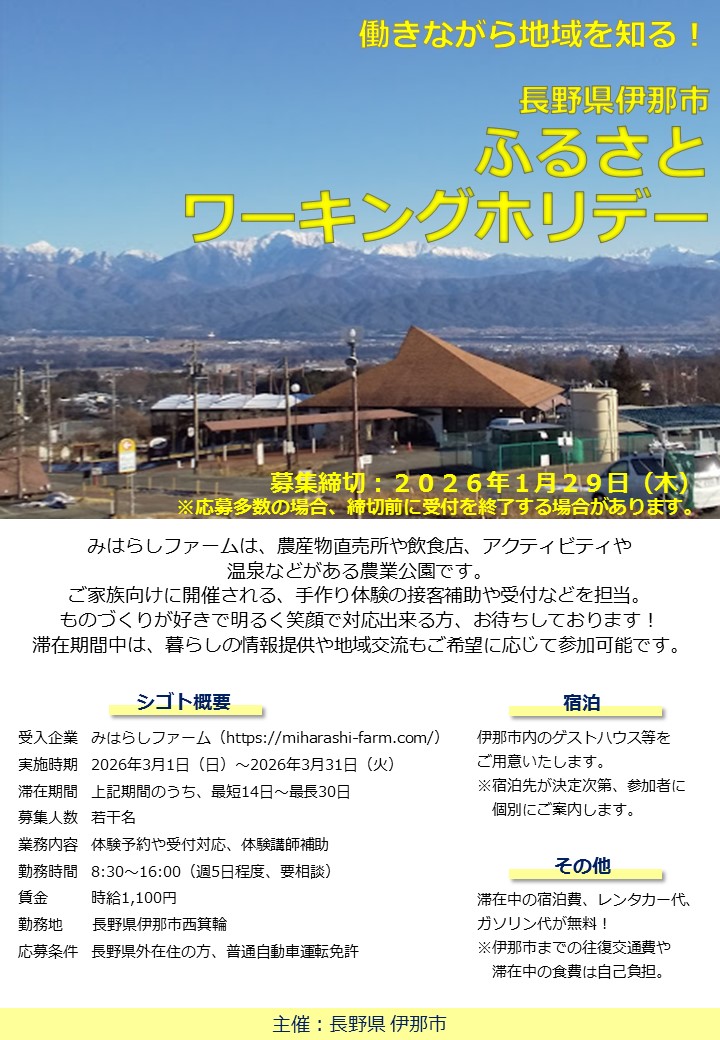 【みはらしファーム】伊那市ワーキングホリデーチラシ(PDF:875KB)