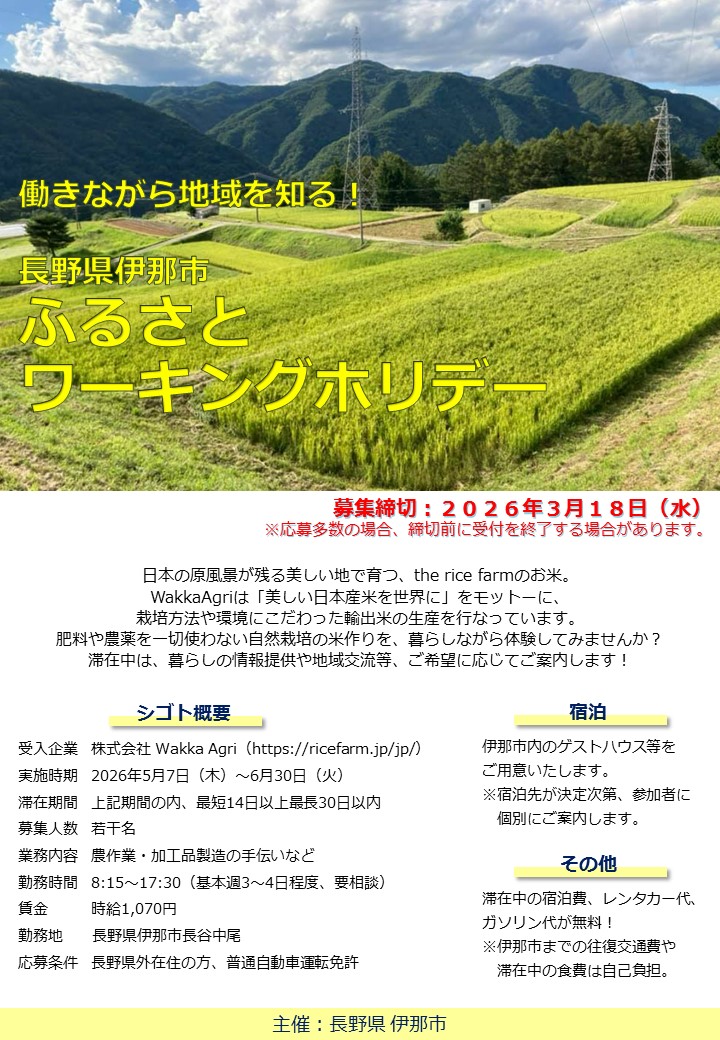 【Wakka Agri】伊那市ワーキングホリデーチラシ(PDF:974KB)