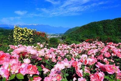 毎年5月、6月は伊那市内各所でバラが咲き誇り、伊那市は「バラのまち」となります。