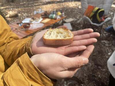 シロップをパンにつけていただきます