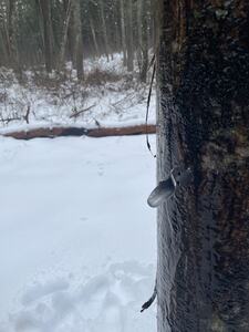 この時期がメープルシロップの旬。北米では子どもたちが森じゅう走り回ってバケツをしかけて、ぽたぽたと滴る樹液をためるのだとか。