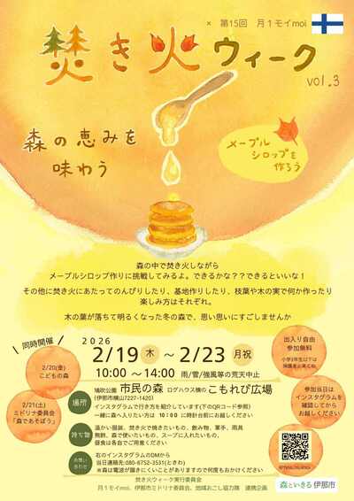 第15回 月1モイmoi「たき火ウィークVol.3メープルシロップを作ろう」のお知らせ