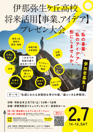令和8年2月7日伊那弥生ヶ丘高校将来活用【事業、アイデア】プレゼン大会を開催します!