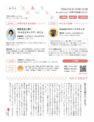 このイベントを通して、伊那市で自分らしく何かしてみたいという人を見つけたり、出会ったり、ゆるやかな場にしできたらと思います。