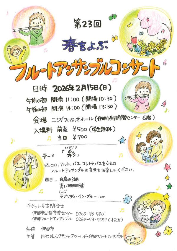 伊那フルートアンサンブル 0265-73-9359(松浦)