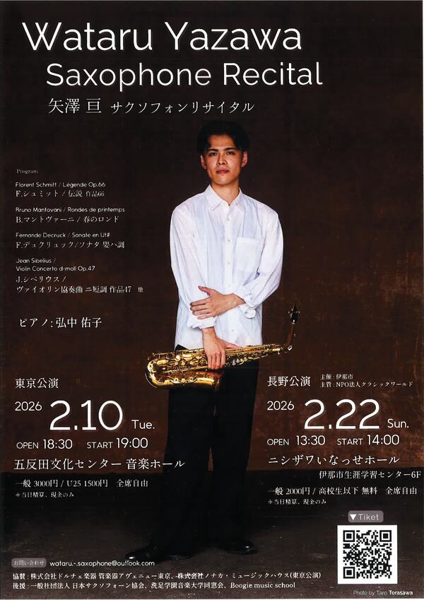 矢澤 亘(伊那市高遠町出身) サクソフォンリサイタル