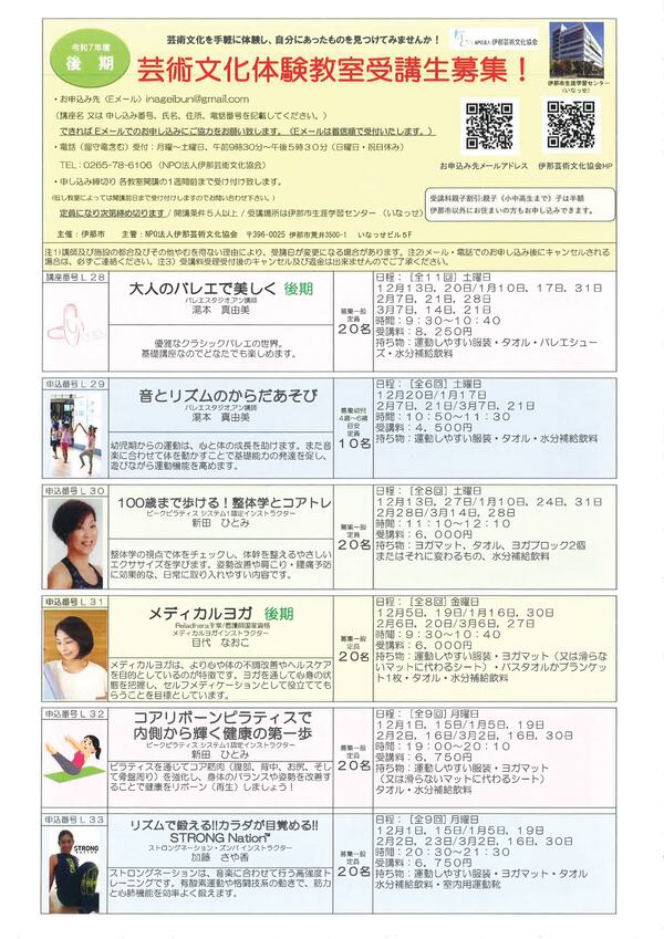 令和7年度(後期)芸術文化体験教室受講生募集