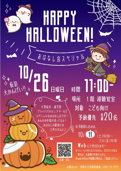 おはなしのひろば「ハロウィンスペシャル」開催のお知らせ(伊那図書館)